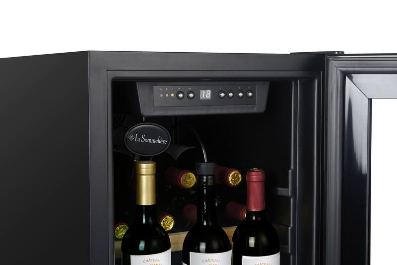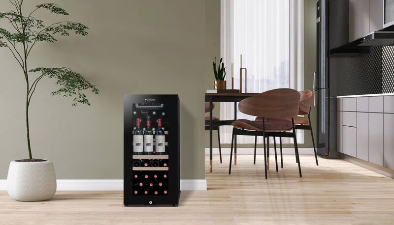 La LS38BLACK unisce la messa a temperatura e la conservazione prolungata delle bottiglie aperte grazie al suo sistema innovativo Preservin. Questa tecnologia con pompa a vuoto integrata permette di preservare aromi e sapori dei vini fino a 3 settimane dopo l'apertura.Può contenere 38 bottiglie*, di cui 3 in posizione verticale per beneficiare del sistema Preservin. Il suo design moderno include una porta in vetro nero, luce LED e ripiani in metallo con frontale in legno.Dotata di un termostato elettronico (Quantity